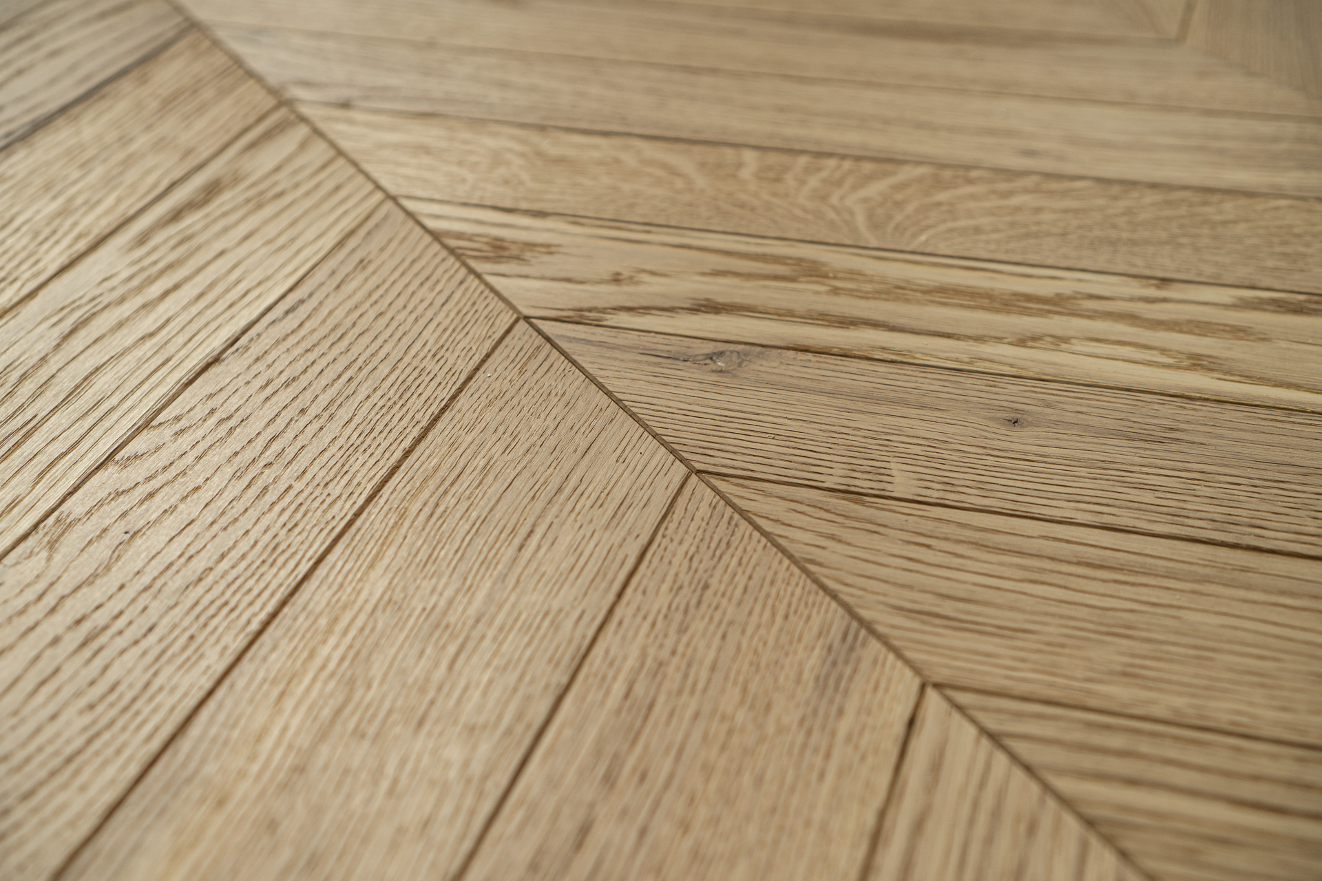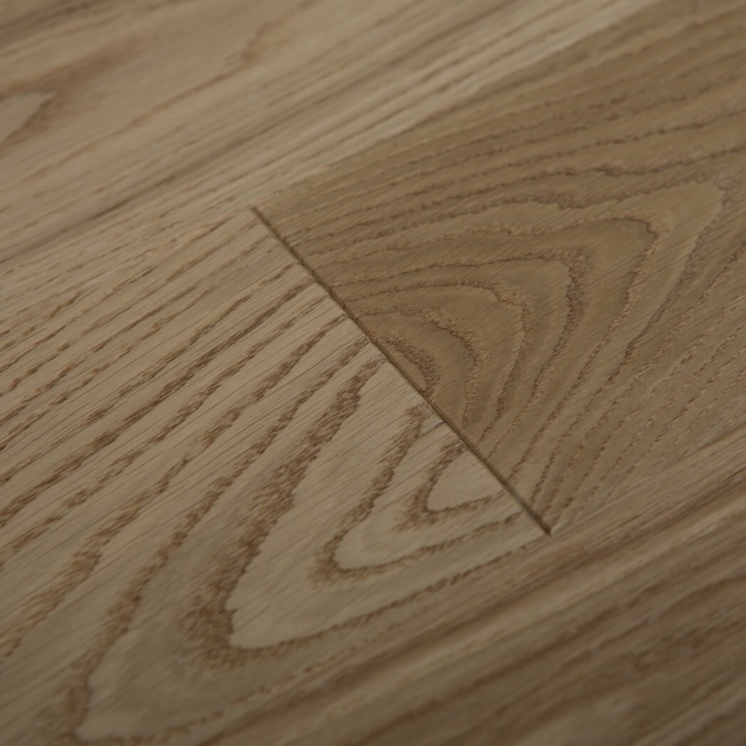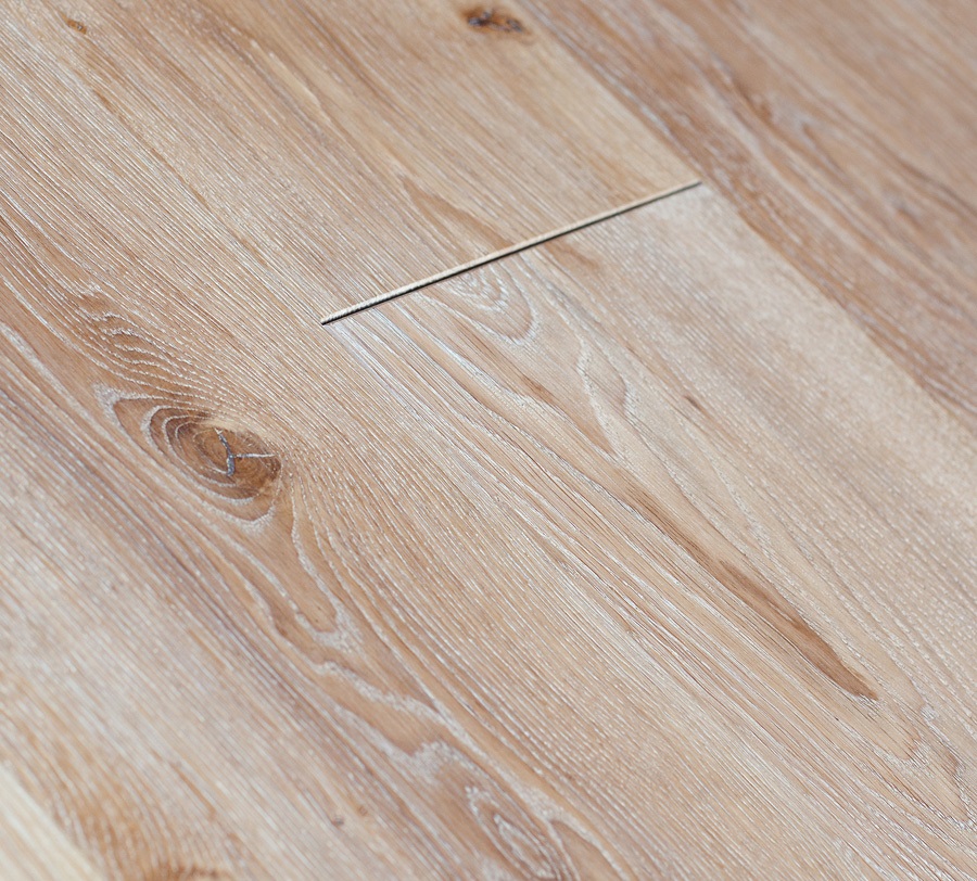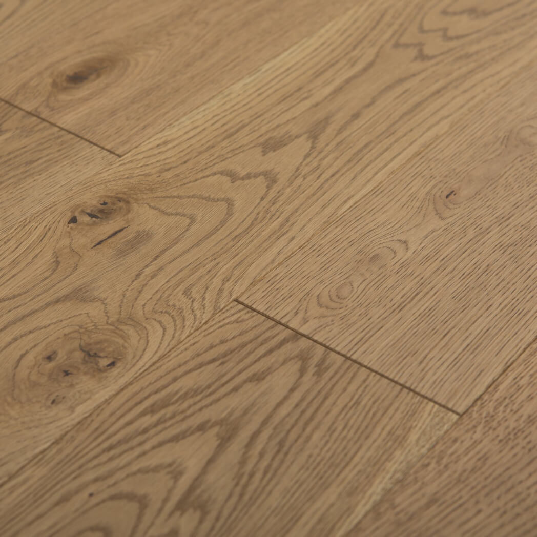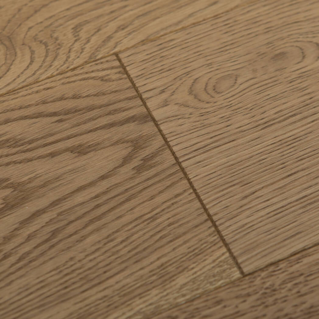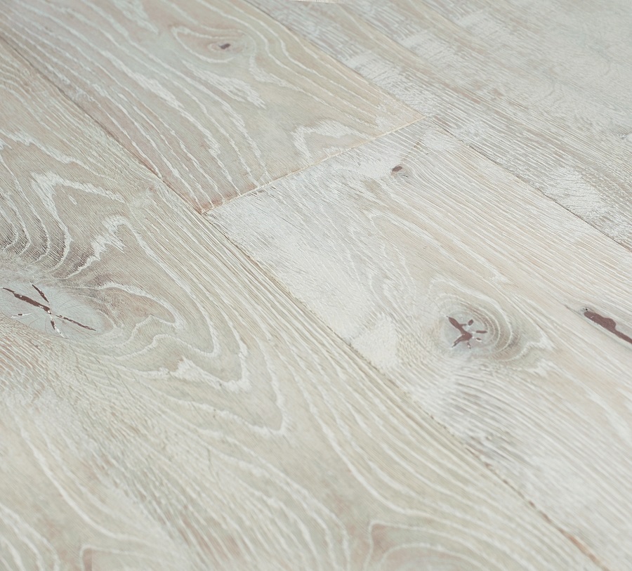 Dąb wykończony lakierem matowym, 4-stronnie fazowany, głęboko szczotkowany.