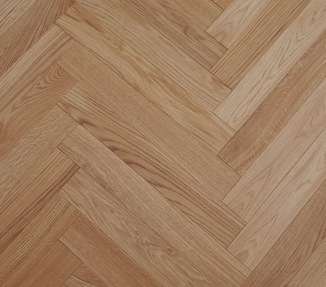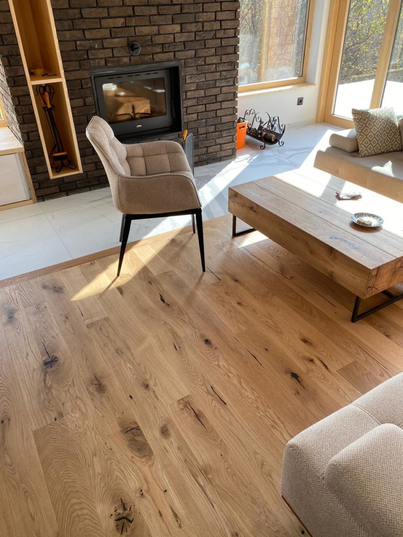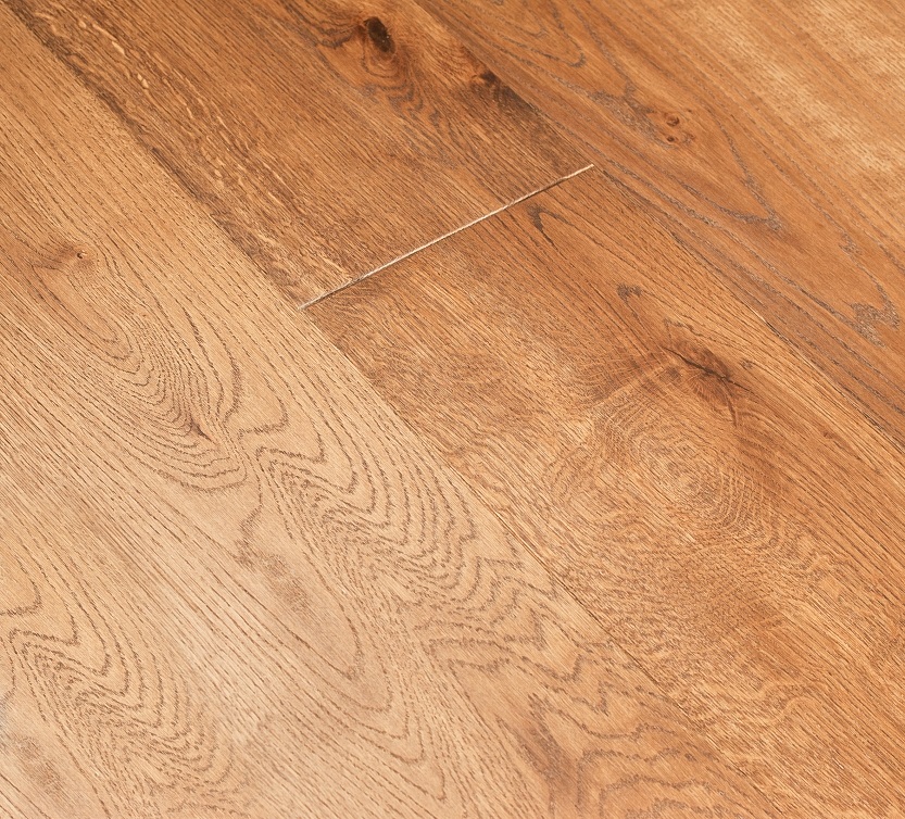 Dąb wykończony olejowoskiem lub lakierem, 4-stronnie fazowany, szczotkowany.