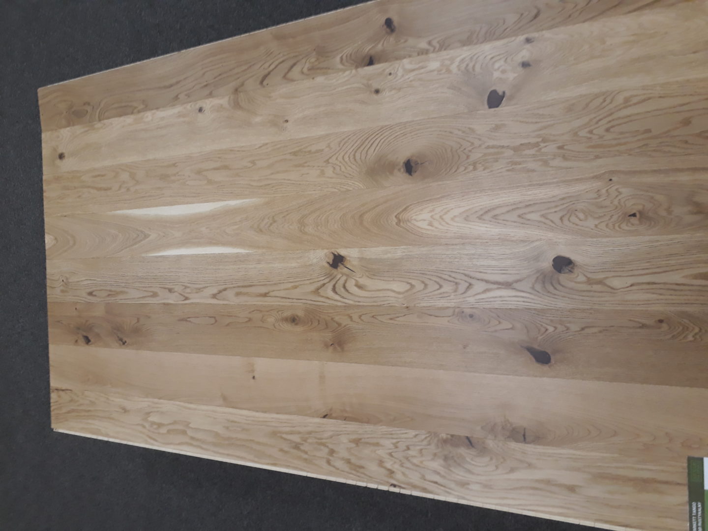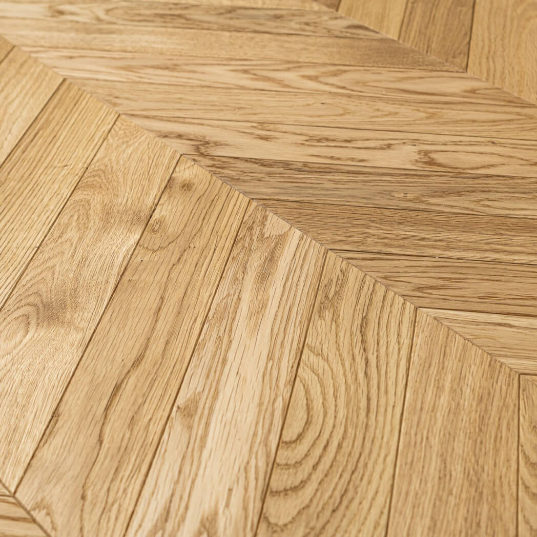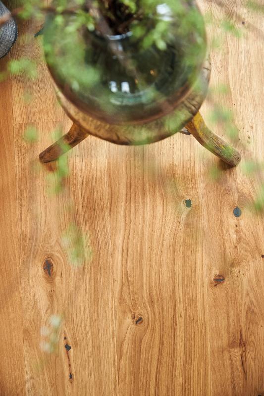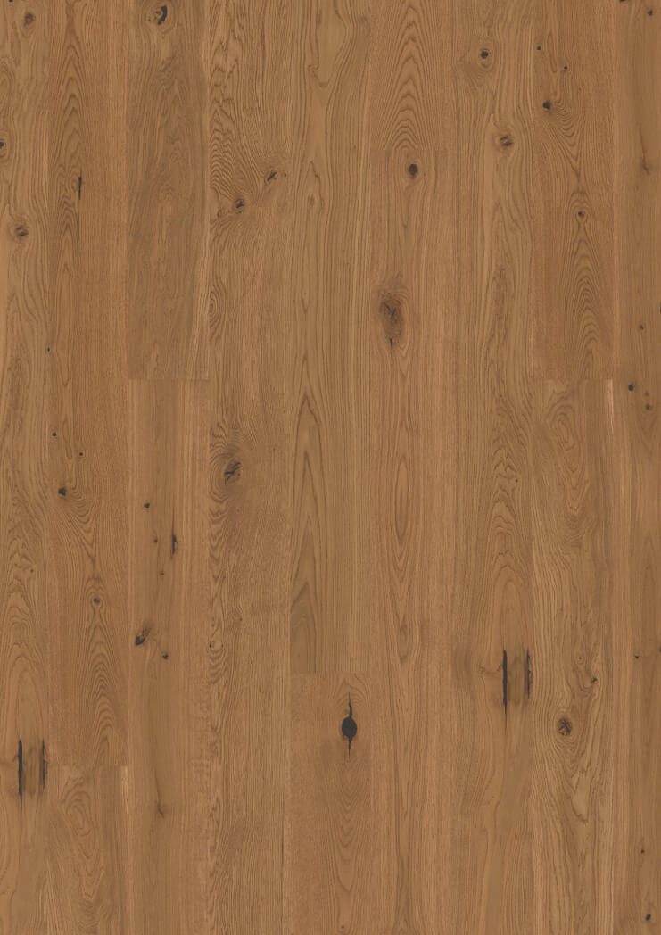Dąb wykończony lakierem matowym, lakierem Live Pure lub olejowskiem, 2-stronnie fazowany, szczotkowany.