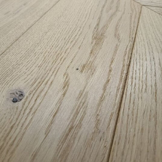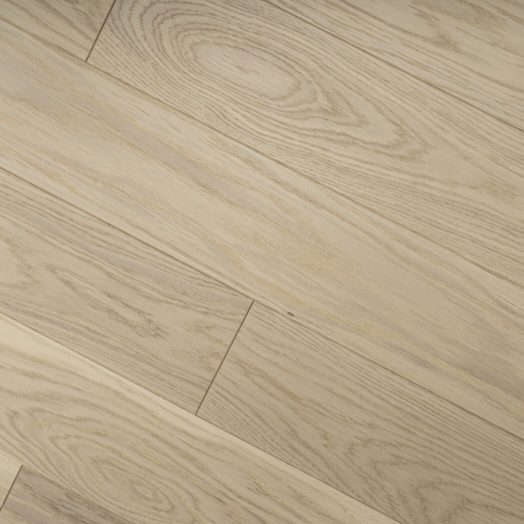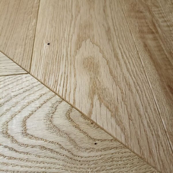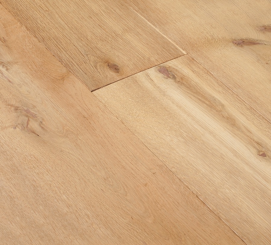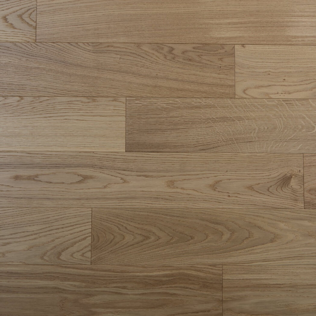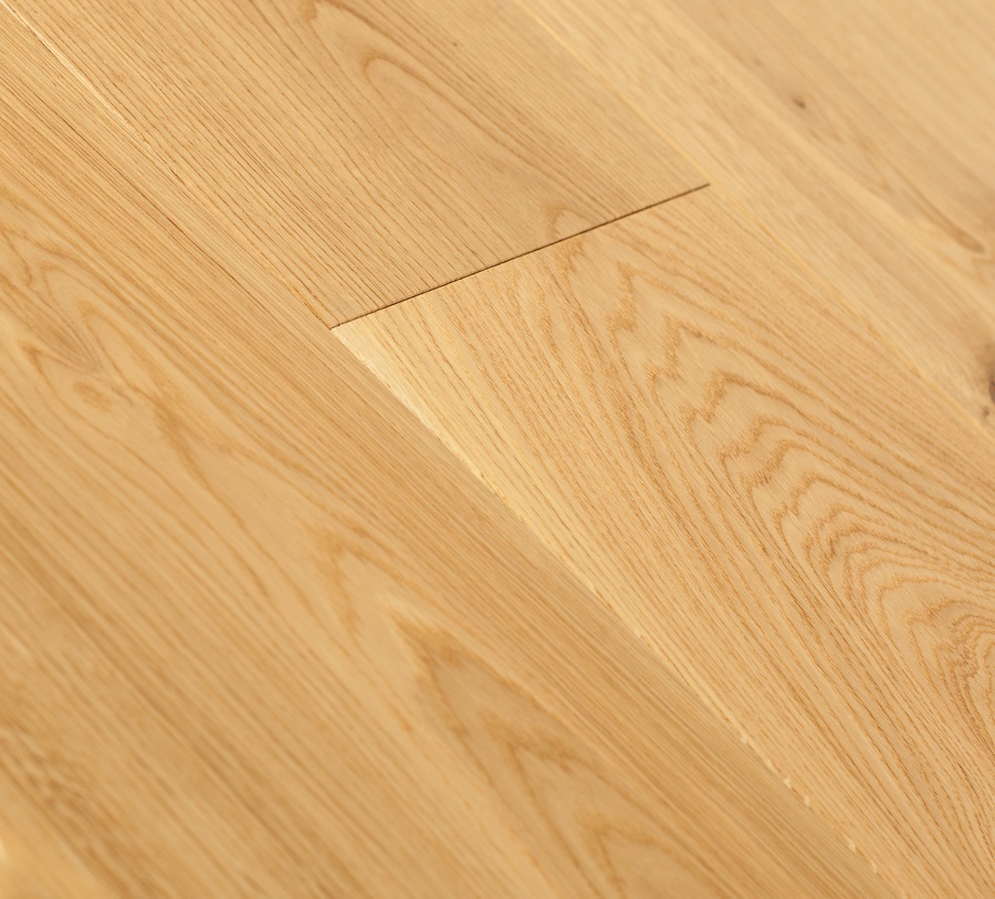 Dąb wykończony lakierem, 2-stronnie fazowany, delikatnie szczotkowany.