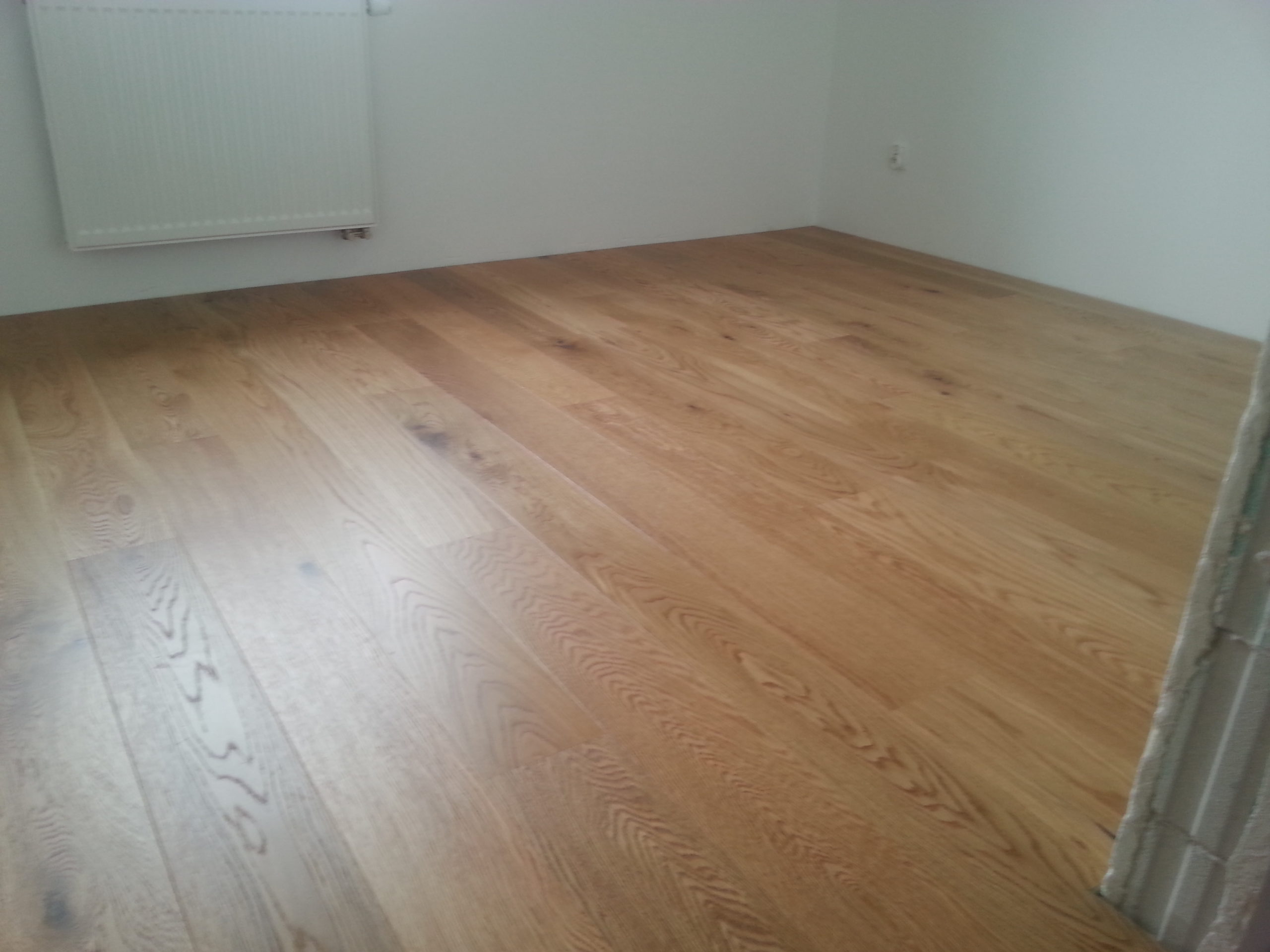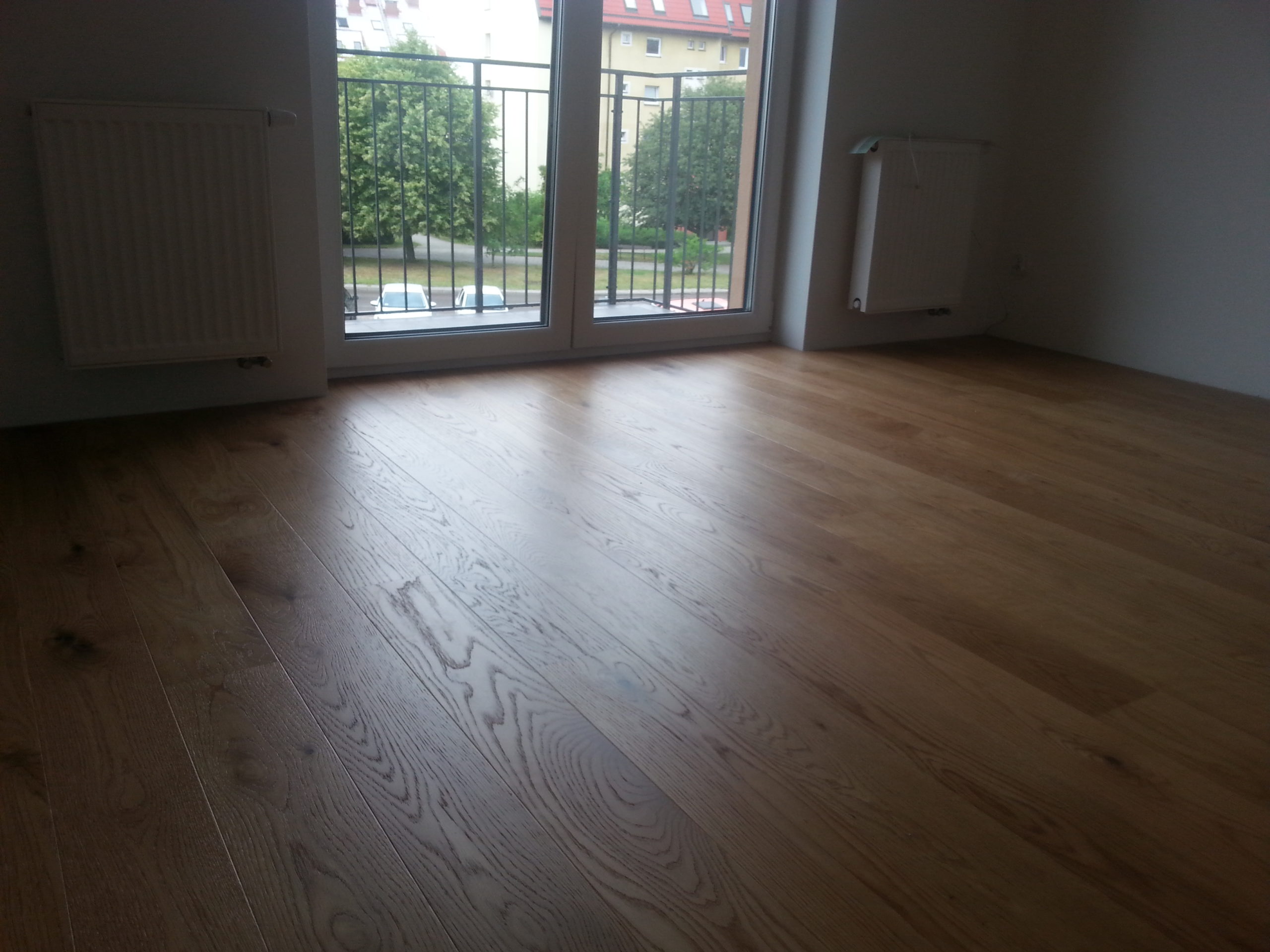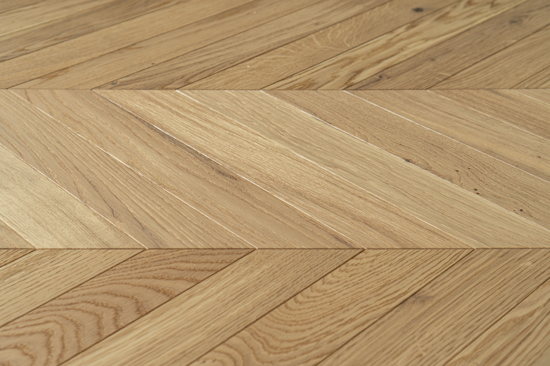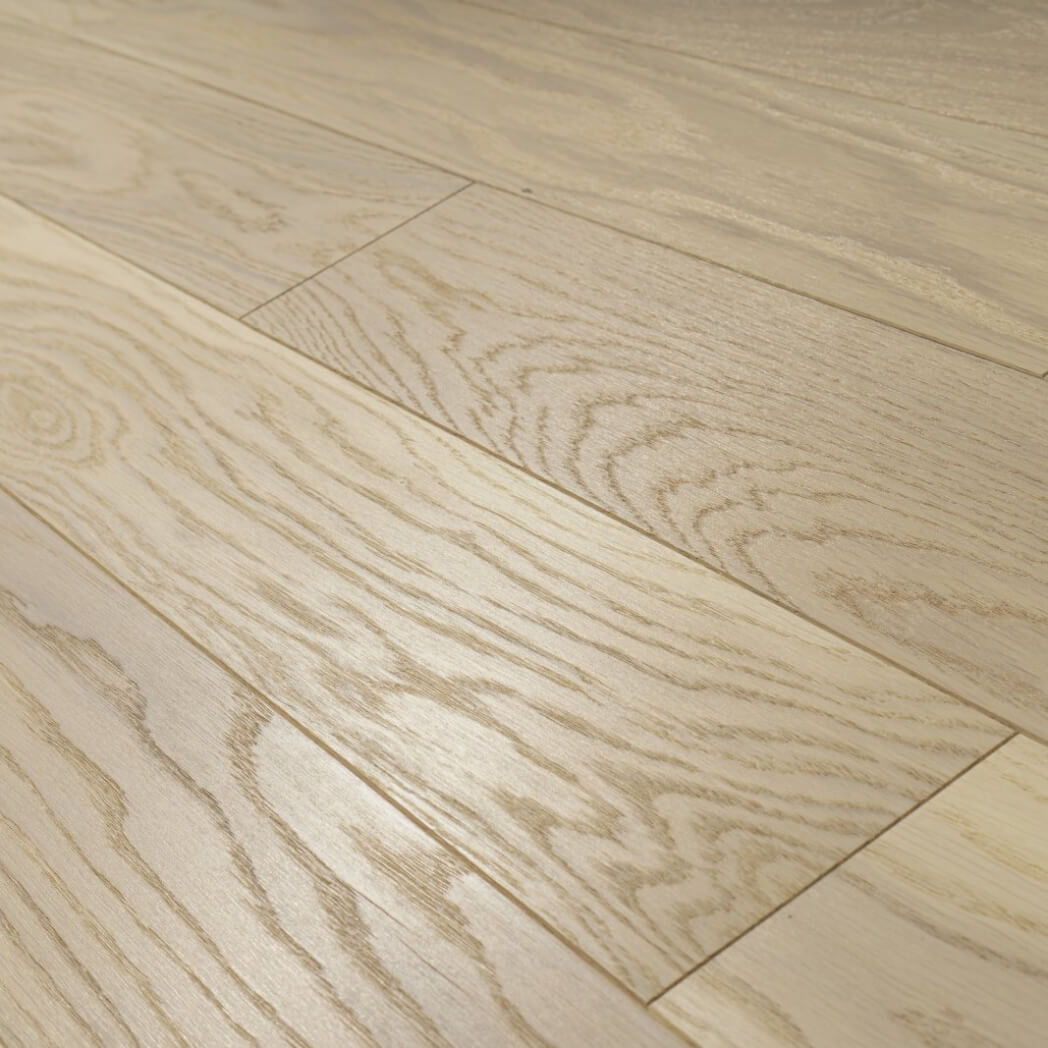 Dąb wykończony lakierem, 2-stronnie fazowany, delikatnie szczotkowany.