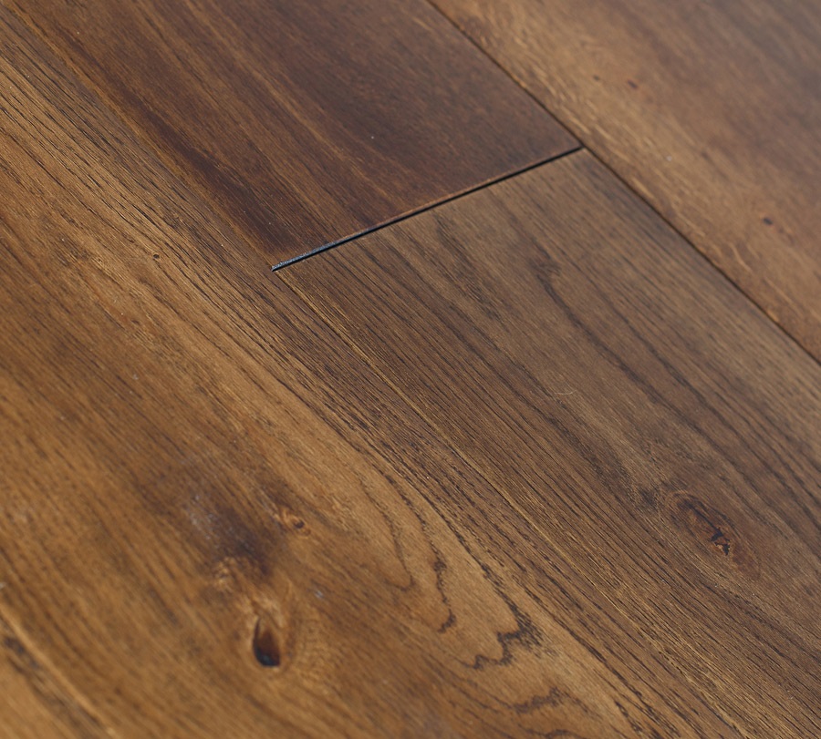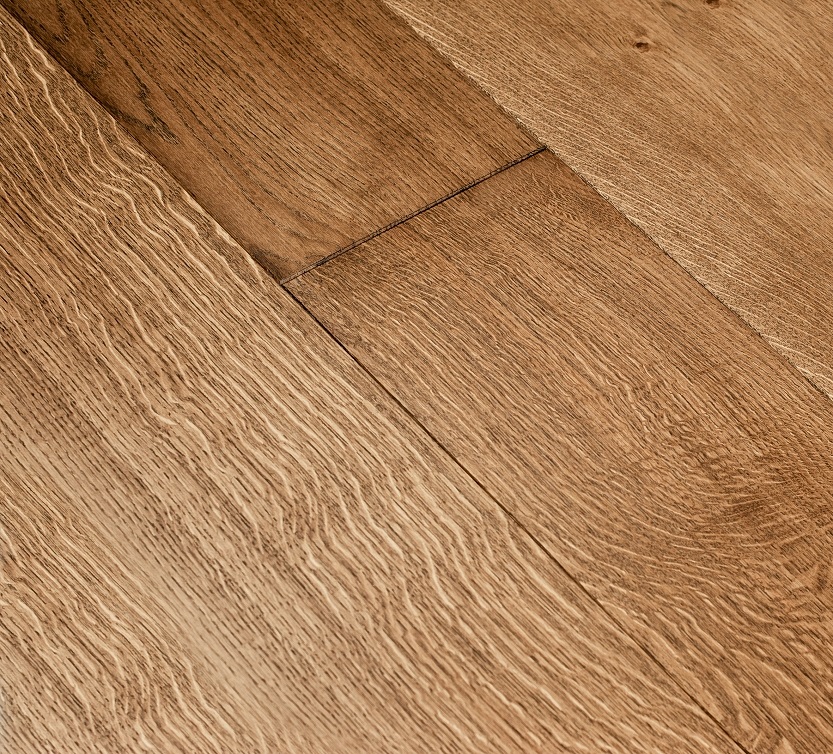 Dąb wykończony olejowoskiem, 4-stronnie fazowany, szczotkowany.